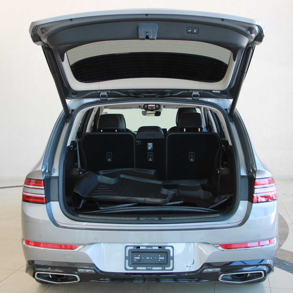 Navigation, Leather Seats, Third Row Seat, All Wheel Drive, Power Liftgate, Rear Air, Heated Driver Seat, Heated Rear Seat, Cooled Driver Seat, Back-Up Camera, Turbocharged, Premium Sound System, Satellite Radio, iPod/MP3 Input, Onboard Communications System Rear Spoiler, MP3 Player, Remote Trunk Release, Privacy Glass, Keyless Entry. Genesis Advanced + with Savile Silver exterior and Black interior features a V6 Cylinder Engine with 375 HP at 5800 RPM*.